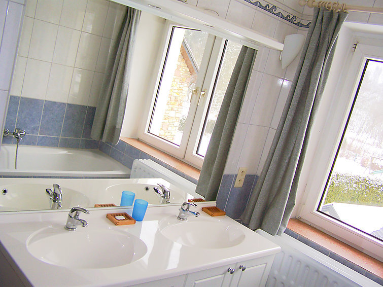 Vielsalm: Rustieke, comfortabel landhuis "Vielsalm", van 3 verdiepingen. 1 km van de bosrand, 200 m van het meer, 50 m van de rivier. Voor medegebruik: tuin. Voor alleengebruik: tafeltennis, jeu de boules, barbecue, kinderspeelplaats (schommel). In het huis: trampoline. Parkeerplaats bij het huis, eigen garage. Winkel 200 m, supermarkt 280 m, restaurant, bakkerij, café 300 m, bushalte "Vielsalm centerparcs" 300 m, treinstation "Vielsalm" 1 km, overdekt zwembad 700 m. Tennis, tennishal 800 m, manege 10 km, sportcentrum 950 m, wandelroutes 50 m vanaf het huis, fietspad. Attracties in de buurt: Attractiepark Plopsacoo 13 km, Watervallen van Coo 17 km, Bier brouwerij d'Achouffe 26 km, Het circuit van Spa-Francorchamps 27 km, De thermen van Spa 32 km, Luik 65 km. Bekende meren kunnen gemakkelijk worden bereikt: Lac de Doyards 100 m. Auto noodzakelijk. Er is een gratis shuttlebus (op aanvraag) beschikbaar vanaf het station van Vielsalm naar de vakantiewoning. Groepen jongeren niet toegestaan.