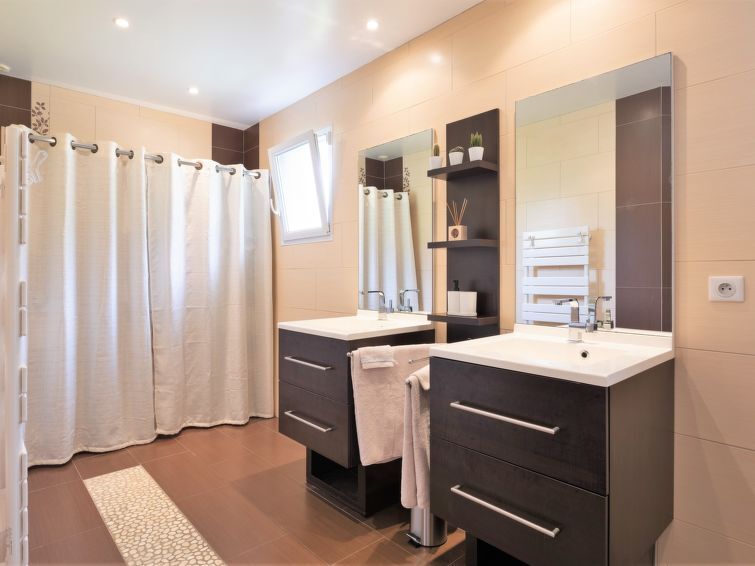 Huis 5-kamers 155 m2 op 2 verdiepingen. Ruim en licht, comfortabel en mooi ingericht: groot woon-/eetkamer 60 m2 met eettafel en TV (Flatscreen TV). Uitgang naar het balkon, naar het terras, op het zuiden. 1 kamer met 1 2-pers bed (160 cm, lengte 200 cm). Uitgang naar het balkon. 1 kamer met 2 bedden (90 cm, lengte 190 cm). Open keuken (oven, afwasmachine, 3 inductiekookplaten, broodrooster, waterkoker, magnetron, diepvriezer, elektrische koffiemachine, pads voor de koffiemachine (Senséo) extra) met eettafel. Douche, aparte WC, dubbele wastafels. Bovenverdieping: 2 kamers, elke kamer heeft 1 2-pers bed (140 cm, lengte 190 cm). Uitgang naar het balkon. Douche/WC. Verwarming, air-conditioning. 2 balkons, op het zuiden gelegen, terras 25 m2, overdekt, op het noorden gelegen. Terrasmeubelen, barbecue (verrijdbaar), ligstoelen (6). Mooi uitzicht in de verte. Ter beschikking: wasmachine, droger, strijkijzer, kinderstoel, kinderbed, haardroger. Internet (Internet (WiFi), gratis). Geschikt voor families. Rookvrij huis. Rookmelders. Aanbod door een particulier volgens art. 155, IV van CGI.
