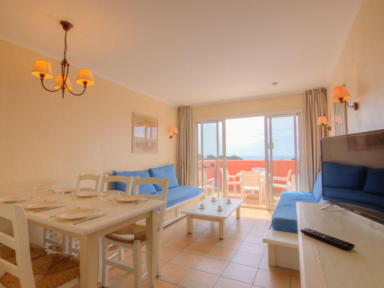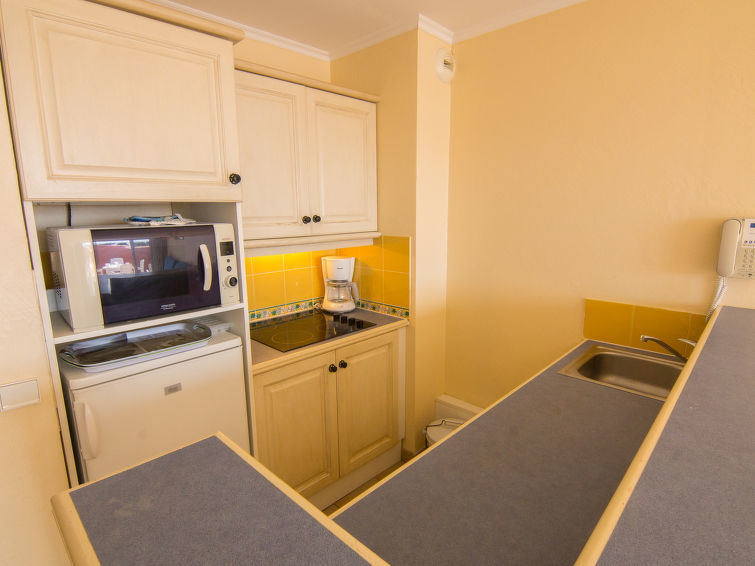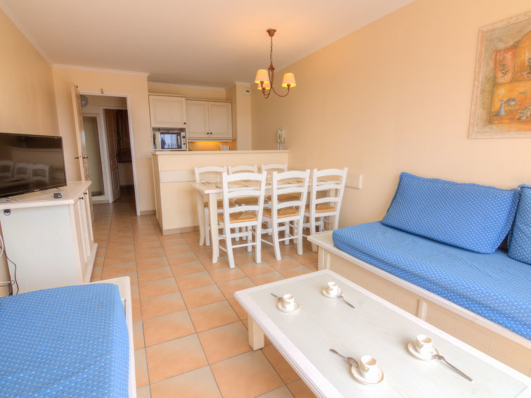 Appartement 3-kamers 45 m2 op de 3e verdieping. Eenvoudig en doelmatig ingericht: woon-/eetkamer met 1 2-pers divanbed (1 x 140 cm, lengte 190 cm), TV. Uitgang naar het terras. 1 kamer met 1 2-pers bed (140 cm, lengte 190 cm). 1 kamer met 1 x 2 stapelbedden (80 cm, lengte 190 cm). Kookhoek (afwasmachine, 4 keramische glas kookplaten, broodrooster, waterkoker, magnetron, elektrische koffiemachine). Badkamer, douche/WC. Elektrische verwarming. Terras 8 m2, op het zuiden gelegen. Zeer mooi uitzicht op zee. Ter beschikking: wasmachine. Internet (WiFi, extra). Parkeerplaats nr. 392. Niet rokers woning. 1 klein huisdier/hond toegestaan. Rookmelders, geen lift. 83107000392NB