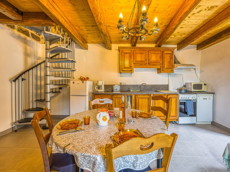 "Le Trépadou", huis 2-kamers 50 m2 op 2 verdiepingen. Volledig in 2022, comfortabel ingericht: woon-/eetkamer met 1 divanbed (140 cm, lengte 190 cm), Sat-TV (Flatscreen TV), ventilator. Uitgang naar het terras. Open keuken (1 kookplaat, oven, afwasmachine, 3 kookpitten (vlammen), broodrooster, waterkoker, magnetron, elektrische koffiemachine). Bovenverdieping: (wenteltrap), 1 kamer met 1 x 2 stapelbedden (90 cm, lengte 190 cm), 1 2-pers bed (1 x 140 cm, lengte 190 cm). Uitgang naar het terras. Douche/WC. Elektrische verwarming. Groot terras 30 m2. Terrasmeubelen, barbecue, ligstoelen. Zeer mooi uitzicht op de bergen, het landschap en het bos. Ter beschikking: wasmachine. Rookvrij huis. Privé ingang, rookmelders. Aanbod door een particulier volgens art. 155, IV van CGI.