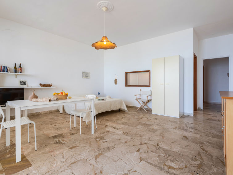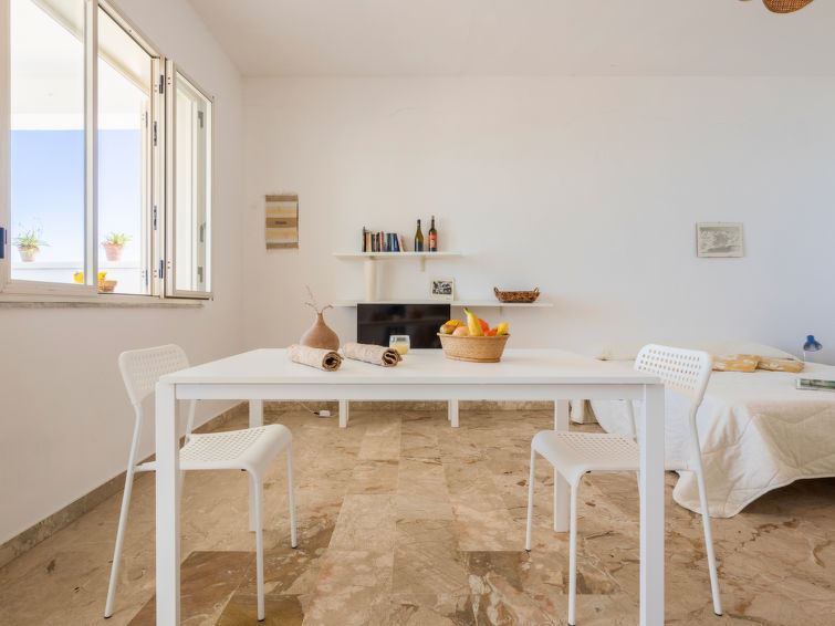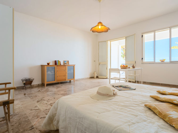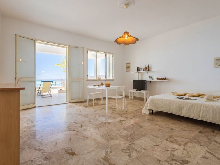 Studio 1-kamer 50 m2 op de 1e verdieping. Zeer eenvoudig ingericht: woon-/eetkamer met 1 2-pers bed en TV. Uitgang naar het terras. Kookhoek (4-pits kookplaat, broodrooster, waterkoker, magnetron, elektrische koffiemachine). Douche/bidet/WC. Boiler (30 liter). Geen verwarmingsmogelijkheid. Terras 20 m2, overdekt. Terrasmeubelen. Mooi panoramazicht op zee. Ter beschikking: strijkijzer, haardroger. Rookvrij huis. Rookmelders, brandblusser. IT084033C2JTTMZL6A