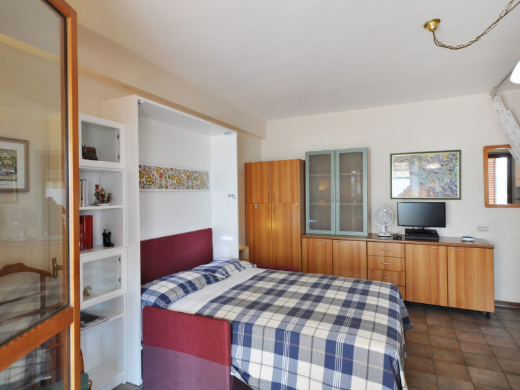 Appartement 1-kamer 40 m2 op de 2e verdieping. Eenvoudig en doelmatig ingericht: woon-/slaapkamer met 1 2-pers bed (140 cm), Sat-TV (Flatscreen TV), air-conditioning, ventilator en heteluchtverwarming. Uitgang naar het terras. Kookhoek (4-pits kookplaat, mini-oven, broodrooster, waterkoker, magnetron, diepvriezer) met eettafel. Douche/bidet/WC. Verwarming (extra), air-conditioning, heteluchtverwarming (extra), boiler (50 liter). Verwarming alleen beschikbaar van 01.12. tot 31.03. Terras 10 m2, overdekt. Balkonmeubilair. Beperkt uitzicht op zee. Ter beschikking: wasmachine, strijkijzer, haardroger. Internet (Internet (WiFi), gratis). Parkeerplaats (extra, overdekt). Rookmelders, brandblusser, geen lift. IT087002C2L99FRSI8