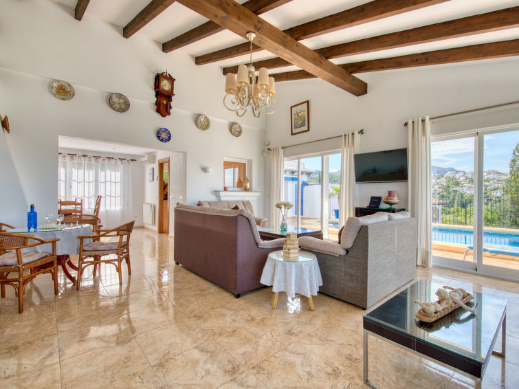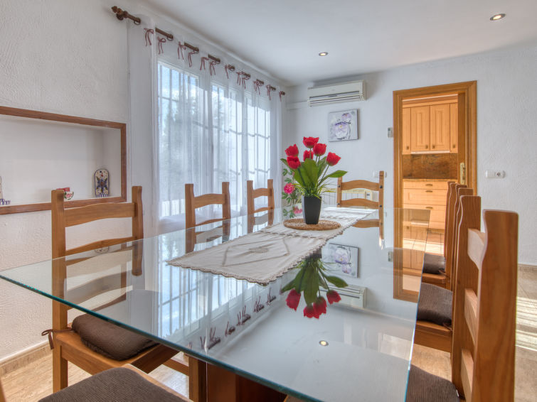 "Isabel", huis 6-kamers. Ruim en licht, zeer comfortabel en mooi ingericht: groot woon-/eetkamer met Sat-TV, Flatscreen TV, air-conditioning en heteluchtverwarming. Uitgang naar het terras, naar het zwembad. 2 kamers, elke kamer heeft 1 2-pers bed, TV, air-conditioning en heteluchtverwarming. 1 kamer met 1 2-pers bed (150 cm, lengte 190 cm), wastafel, douche/WC, air-conditioning en heteluchtverwarming. Uitgang naar de tuin. 1 kamer met 2 bedden (105 cm, lengte 190 cm), 1 opklapbed, wastafel, douche/WC, air-conditioning en heteluchtverwarming. Keuken (oven, afwasmachine, 4 keramische glas kookplaten, magnetron, diepvriezer, elektrische koffiemachine, pads voor de koffiemachine (nespresso (No incl.)). Uitgang naar de tuin, naar het terras. Douche, bidet, aparte WC. Terras gedeeltelijk overdekt. Terrasmeubelen, barbecue, ligstoelen. Mooi panoramazicht op zee, de bergen, het dal en het landschap. Ter beschikking: wasmachine, droger, strijkijzer, kinderstoel, kinderbed tot 3 jaar, haardroger. Internet (WiFi, gratis). Parkeerplaats (3 Auto's). Geschikt voor families. Maximaal 1 huisdier/hond toegestaan. TV alleen ES, FR. 2 slaapkamers zijn enkel via buiteningang bereikbaar. AT-435747-A // Reg. Nr.: ESFCTU00000301500022972300000000000000000AT-435747-A6