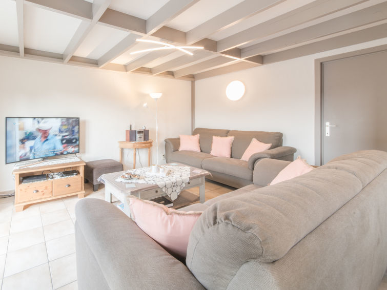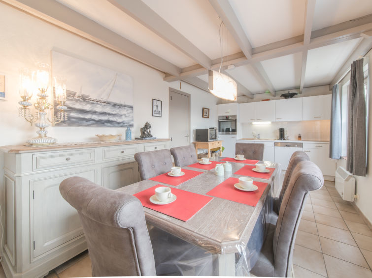 "Vissershuisje nr. 213", huis 4-kamers 100 m2. Comfortabel ingericht: woon-/eetkamer met eettafel, Digitale TV en elektrische verwarming. Uitgang naar de tuin, naar het terras. 1 kamer met 1 2-pers bed (1 x 180 cm, lengte 200 cm). Open keuken (afwasmachine, 4 keramische glas kookplaten, broodrooster, waterkoker, elektrische koffiemachine, combimagnetron). Douche, aparte WC. Bovenverdieping: met afgeschuinde daken, 1 kamer met 1 2-pers bed (1 x 160 cm, lengte 200 cm). 1 kamer met 2 bedden (90 cm, lengte 200 cm). Terrasmeubelen, barbecue, bergruimte. Ter beschikking: Internet (Internet (WiFi), gratis). Blu-Ray speler. Parkeerplaats (2 Auto's). Rookvrij huis. Maximaal 1 huisdier/hond toegestaan.