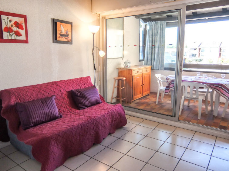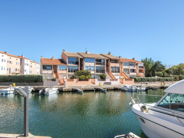 Residentie "Port au Prince", van 2 verdiepingen. In de wijk Les Capellans, 1.5 km van zee, 1.5 km van het strand, directe toegang tot de lagune. Winkel, levensmiddelenwinkel 500 m, supermarkt 1.7 km, restaurant 500 m, bushalte 400 m, treinstation "Elne" 6.7 km, zandstrand "Plage Sud" 1.5 km. Jachthaven 2 km, golfterrein (27 holes) 5.4 km, zeilschool 2 km, midgetgolf 4 km, manege 2 km, sportcentrum 650 m. Attracties in de buurt: Aqualand 1.7 km.