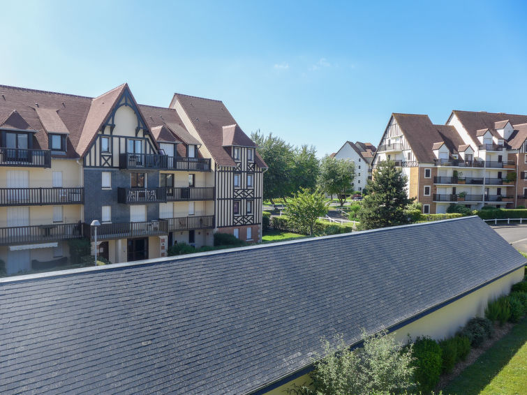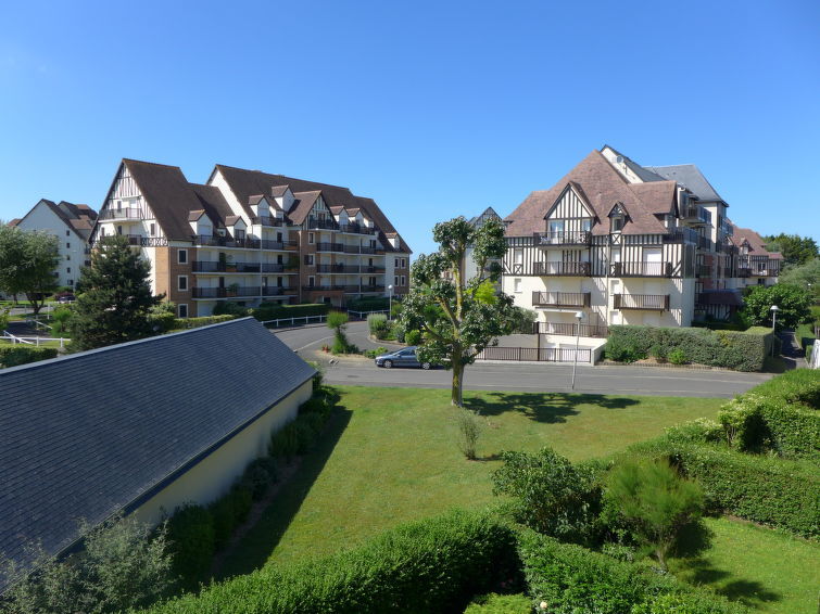 Complex met huizen in een rij en appartementenhuizen in normadische stijl: residentie "Fleur Marine". In de plaats, 1 km van het centrum van Cabourg, 300 m van zee, 300 m van het strand, directe toegang tot het strand. Voor medegebruik: jeu de boules, parkeerplaats (beperkt aantal). Winkel 1 km, levensmiddelenwinkel 1 km, supermarkt 900 m, restaurant 1 km, bar 1 km, fietsverhuur 550 m, bushalte "Plage" 450 m, zandstrand 300 m, thermaalbad "Thalazur" 500 m. Jachthaven 3 km, golfterrein (9 holes) 1.2 km, tennis 700 m, midgetgolf 2.3 km, sportcentrum 500 m. Attracties in de buurt: Deauville 26 km, Honfleur 48 km, Caen 25 km. Geen lift. De afgebeelde foto is slechts een voorbeeld.