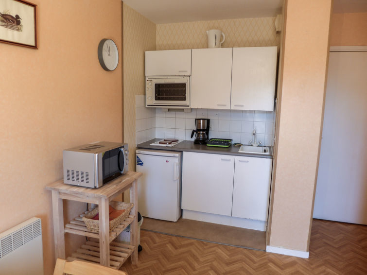 Appartement 2-kamers 28 m2 op de 2e verdieping, op het noordoosten gelegen. Woon-/eetkamer met TV (Flatscreen TV). Uitgang naar het balkon. 1 kamer met 1 2-pers bed (140 cm, lengte 190 cm). Kookhoek (2-pits kookplaat, mini-oven, broodrooster, waterkoker, magnetron, elektrische koffiemachine). Douche/WC. Elektrische verwarming, boiler. Parketvloeren. Balkon 8 m2. Balkonmeubilair. Ter beschikking: strijkijzer. Internet (Internet (WiFi), extra). Maximaal 1 huisdier/hond toegestaan. Rookmelders.