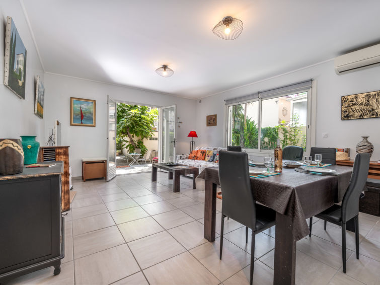 Appartement 3-kamers 60 m2, op de begane grond. Comfortabel en mooi ingericht: woon-/eetkamer met TV (Flatscreen TV), air-conditioning. Uitgang naar het terras. 1 kamer met 1 2-pers bed (160 cm, lengte 200 cm), TV (Flatscreen TV), air-conditioning. 1 kamer met 2 bedden (90 cm, lengte 190 cm), air-conditioning. Uitgang naar het terras. Keuken (4 inductiekookplaten, broodrooster, waterkoker, magnetron, diepvriezer, elektrische koffiemachine, pads voor de koffiemachine (Nespresso) extra). Douche/WC. Air-conditioning. Terras 15 m2, op het zuidoosten gelegen, zithoek in de tuin 150 m2, op het noordwesten gelegen. Terrasmeubelen. Ter beschikking: wasmachine, haardroger. Internet (Internet (WiFi), gratis). Rookmelders. Aanbod door een particulier volgens art. 155, IV van CGI. 06029029405DP