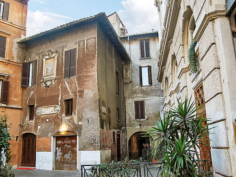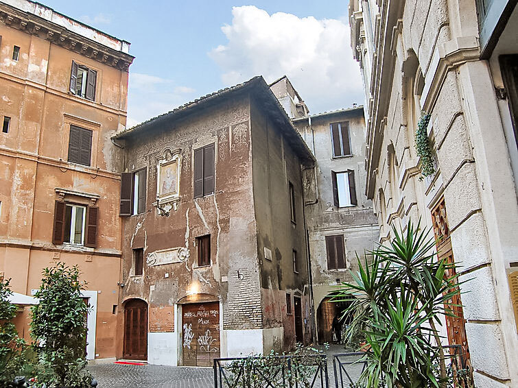 Historische residentie uit de 18e eeuw. In het centrum van Roma, in het district Campo dei Fiori, centrale ligging. In het huis: wasmachine (voor medegebruik). Gemeenschappelijke garage (extra) op 1.5 km, openbare parkeerplaatsen 500 m in de straat extra. Winkel 100 m, levensmiddelenwinkel 200 m, supermarkt, restaurant 50 m, bar 50 m, bushalte "Largo di Torre Argentina" 400 m, treinstation "Termini" 3 km, metrostation "Barberini" 2 km. Attracties in de buurt: Piazza Navona, Pantheon, Colosseo 2 km, Vaticano 2 km. Auto wordt niet aangeraden, geen lift. Gelegen in een van de mooiste wijken van de stad. Op een steenworp afstand van de Trevifontein, Piazza Navona en de Via del Corso.