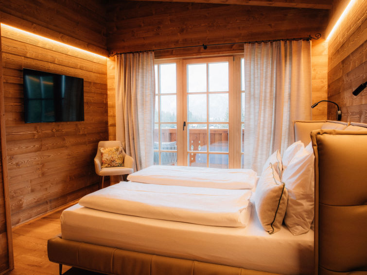 "Sissis Green Chalets/Kaiser Max", chalet 4-kamers 150 m2 op 2 verdiepingen. Luxueus en met veel hout ingericht: hal. 1 2-pers. kamer met douche/WC, TV en Digitale TV (Flatscreen TV). Groot woonkeuken (afwasmachine, 4 inductiekookplaten, broodrooster, waterkoker, magnetron, elektrische koffiemachine, kookeiland) met eettafel, open haard, TV en Digitale TV (Flatscreen TV), elektrische rolluiken. Uitgang naar het terras. Bovenverdieping: 2 2-pers. kamers, elke kamer heeft bad/douche/WC, TV en Digitale TV (Flatscreen TV). Uitgang naar het balkon. Groot terras 25 m2. Terrasmeubelen, barbecue, ligstoelen. Mooi uitzicht op de bergen. Ter beschikking: wasmachine, sauna, haardroger. Internet (WiFi, gratis). Parkeerplaats. Rookvrij huis. Maximaal 2 huisdieren/honden toegestaan. Privé ingang.