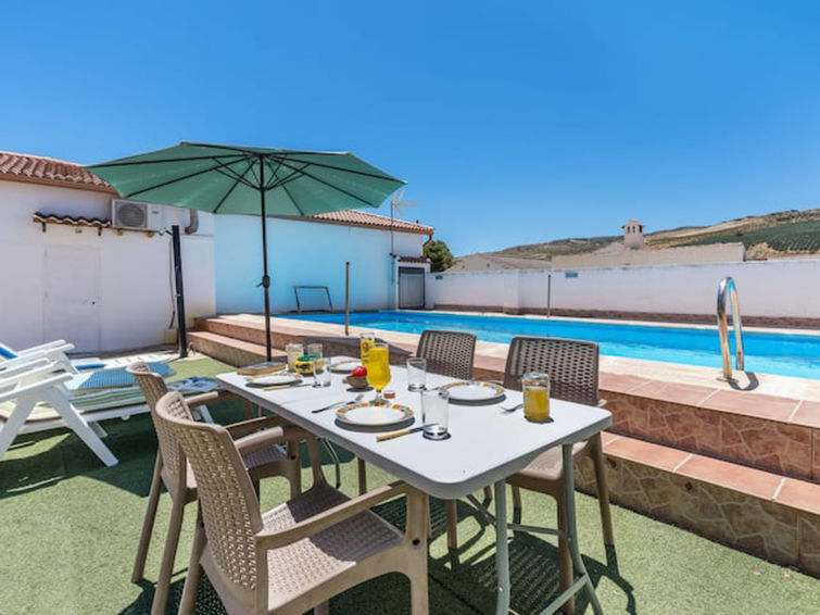 Cacin 42 km van Granada: Huis "Rural Cacin". Aan de rand van de plaats, 400 m van het centrum van Cacín. Voor alleengebruik: terrein 300 m2, tuin met gazon 50 m2, openluchtzwembad (5 x 10 m, 140 - 170 cm diepte, seizoensgebonden beschikbaarheid: 01.Mei. - 30.Sep.). Buitendouche, tennisbaan, basketbal, volleybal, badminton, eigen garage. Oplaadstation. Winkel 150 m, restaurant 300 m, bushalte 200 m. Attracties in de buurt: Parque Natural de la Sierra Tejeda 25 km. Wandelgebied Tajos del rio Cacín 4 km. Geen lift. Kunstgras, er is een basketbalkorf en -bal. Verplaatsbare barbecue.